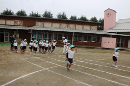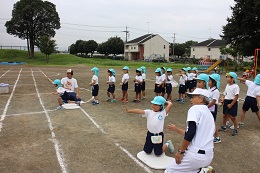 9月4日(月)は、ボール投げ教室でした。4月からはじまった5歳児を対象にしたボール投げ教室も今回で4回目です。今日は、いろいろな走り方(速く走れるようになる方法)に始まり、ボール慣れから、ゴムひもをこえるつもりで、遠くへ投げる練習をしました。互いに向き合って、ボール投げとキャッチボール、いかに相手がとりやすいふんわりボールが投げられるかは、自分の力にこだわりがちな園児たちにとって、相手に心をのせる、相手のことを考えるよい練習だったと思います。自分の思うように技術がともなわず、悔しさに泣き出してしまう園児もいました。園児たちの心が育ってきているのを感じないではいられませんでした。いろいろな体験や人との出会いを通して成長しています。