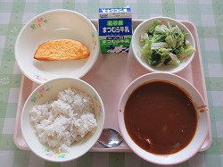 ソイ丼 かきたま汁 バリバリサラダ 牛乳