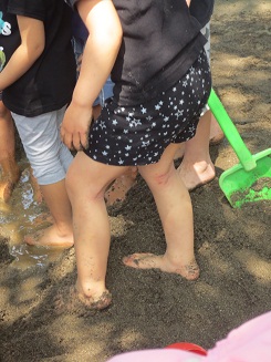 多少濡れて汚れても大丈夫な服に着替え、裸足になりいざ砂場へ・・・