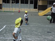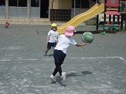 今朝はいつもの遊びの他にドッジボールをする子もいました。うまくボールを投げているし、うまくボールをかわすこともできていました。