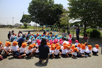 5月15日(火)の午前10時30分から、みらい幼児園おかべと幼稚園の合同の避難訓練を実施しました。5月の避難訓練は、火災からの避難です。初めて、避難場所へ移動する訓練でしたので、3歳児には戸惑いも見られましたが、全員無事に避難することができました。毎月の訓練を重ねることで、身についていくようにしっかりと訓練を実施したいと思います。事前に、火災に関す紙芝居を読んで、お勉強しました。園長からは、放送をよく聞いて行動することの大切さを伝えました。