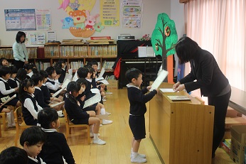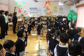 3月26日(火)は3歳児・4歳児の修了式を行いました。修了証を一人一人に渡しましたが、5歳児の卒園式の練習に参加していただけあります、みんな「ありがとうございます」と大きな声でいえました。きりん組さんの残してくれた宝物、ちゃんと在園生は受け取っています。そんな場面に出会うと、感激します。こうやって、受け継がれていくのだなと感じました。先生方からも一人一人、りす組さんとしか組さんにお話をしていただきました。園歌を元気に歌って、始業式の再会を約束しました。降園の時に、保護者の方にご挨拶をしましたが、逆に担任への感謝のことばをいただきました。無事に平成30年度を終えることができました。ありがとうございます。あと2日間、一時預かり事業があります。楽しい時間を過ごしてもらえるように頑張ります。
