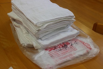 今日は日赤奉仕団の方から、たくさんの雑巾が届きました。ありがとうございます。真っ白の雑巾、新年度から使わせていただきます。