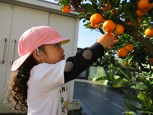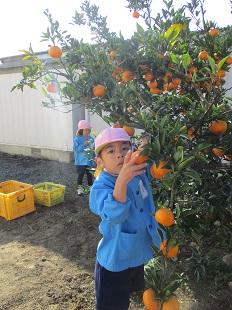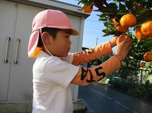 ちょうど良い食べごろなので、今日はみんなでみかん狩りをしました。