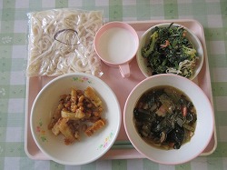 ソイ丼 かきたま汁 バリバリサラダ 牛乳