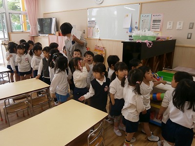 うさぎ組は、背の順の並び方を覚えています。早く自分の場所がわかるようになるといいですね。