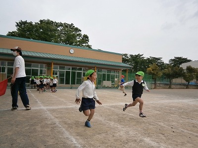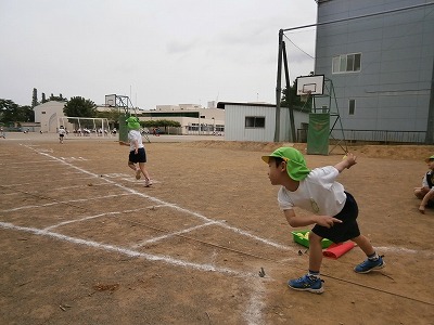 さくら組は、かけっこと、ボール投げです。投げ方、走り方がかっこよくなってきましたよ。お昼は、レストランをみんなで作って食べました。