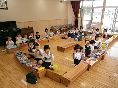連休明けも、元気いっぱいに登園する姿が見られました。中には、少しさびしくなって、涙を見せたお友だちもいましたが、少しすると、慣れてきていつもの笑顔が見られました。