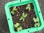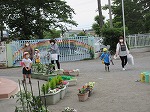一週間前に種まきしたアサガオが生長して年長さんを迎えます