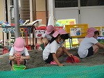 花の苗植えのあとは保育室でアサガオの名札をつくりました