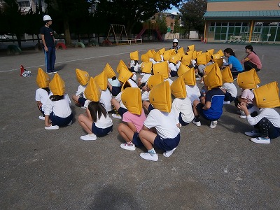 昨日行う予定だった避難訓練を雨のため延期したので、本日行いました。地震から火事を想定して、避難する訓練をしました。回を重ねるごとに、動きがよくなり、素早く行動することができました。