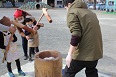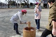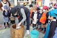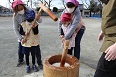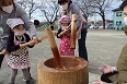 園児たちは餅つきを今か今かと待ち遠しくて・・・体験し美味しく食べました。