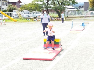 「まん延防止等重点措置」の延長を受け、例年実施しております保育参観の持ち方の変更にご理解いただき感謝いたします。22日に分散型保育参観の計画表を配布しました。第一希望を優先に計画表を作成しましたが、思い通りにならなかった保護者の皆様のご理解に感謝いたします。参加人数を踏まえ三密を考え計画表を作成したことにご理解下さい。参加に際しましては、配布しました健康確認票の提出をお願いいたします。
