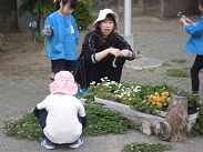 園庭に生えているしろつめ草を使って首飾りを先生と一緒に作りました。