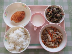ソイ丼 かきたま汁 バリバリサラダ 牛乳