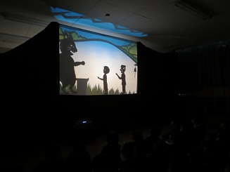 そのあとは影絵鑑賞会でした。本園平成3年度の保護者の方々で結成され、自作の人形劇を使って披露してください。