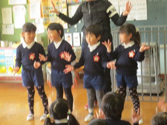 いつも、興味もち驚きのリアクションが豊かな園児たちですが、今日はとっても大きく盛り上がり、演技者の方も喜んでいました。互いが喜び合う、うれしい時間となりました。姿勢もよかったです。