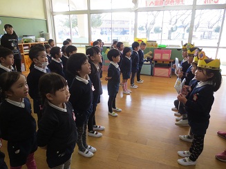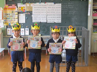 今月は遅くなりましたが、2月お誕生祝いの会です。さくら組さん4人、