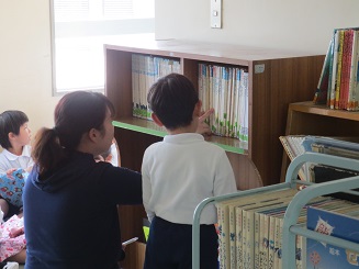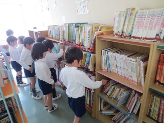 いろいろな事が非認知の知識として記憶されていく時期(脳の働きが最大限に伸びている3才から小学校低学年までの時期)でもあります。先生の具体的なアドバイス、説明と、個の希望を絡めながらも時間内に借りることができました。本が大好きな上柴西幼稚園児です。