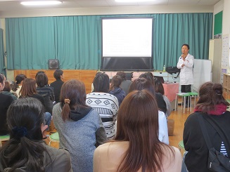 園児の健康はもとより、それを支える母親、家族を支えるお母さんが元気でなければならない。と、いつまでも健康で美しく暖かな家庭を築いていってほしい願いから母の健康についての講演でした。普段、お医者さんではなかなか忙しくて聞けない、ためになる健康の話しでした。