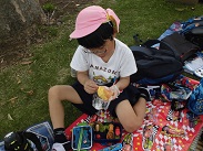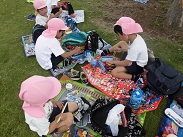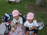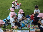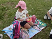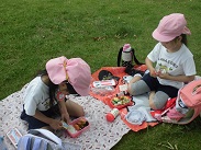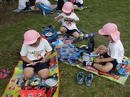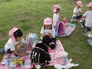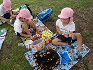 園から歩いてきて、そして公園で十分遊びました。次は楽しみしていたお弁当の時間です。どんなお弁当をお母さんが作ってくれたか楽しみです。でもそれよりお腹すいた。早く食べたい。