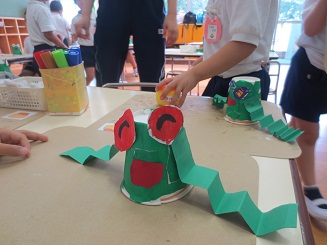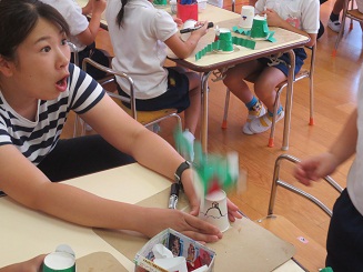 季節にちなんで、ぴょんびょんロケットカエルの製作とその遊びを