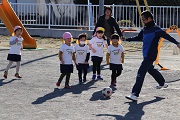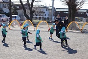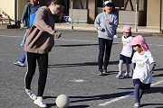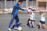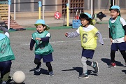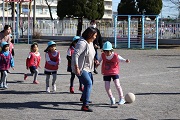 1月のサッカー教室が行われました。とても暖かい日で、園児たちも汗を流しながらサッカーに取り組んでいました。今日は、お母さん、お父さんが大勢参加してくれました。特にお父さん3人は、サッカーが上手で園児たちも歓声をあげるほどでした。園児たちも1学期に比べるとボールをける力が強くなってきました。また、ボールに向かう意欲も大変でてきましたね。