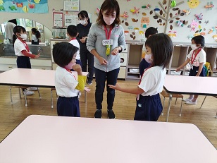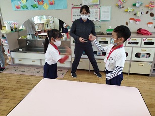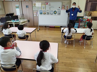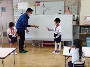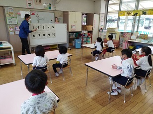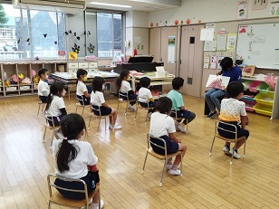 今日は、教育委員会の方の訪問日で、風間前園長先生も来園