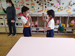 勝ったお友達が1(ワン)負けた子が2(ツー)と