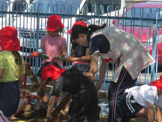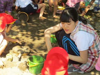 みんな早く仲よくなろうね。実習生も一生懸命です。先生も一生懸命です。いい機会にしたいと思っています。