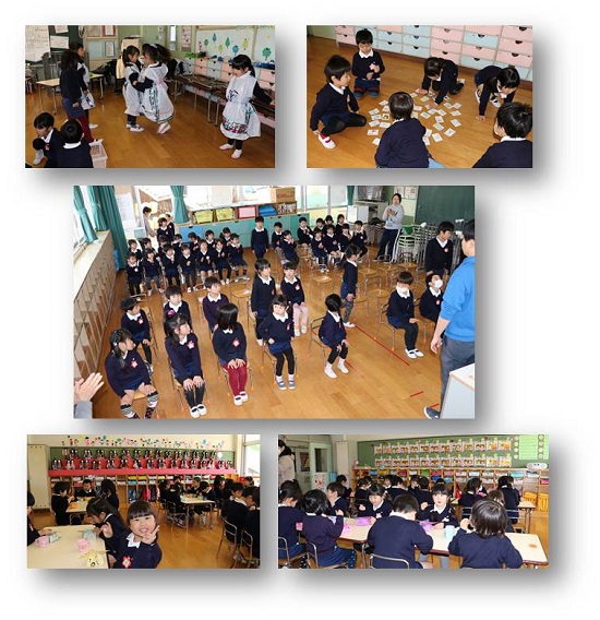 今日から3月です。雨・風・晴れと荒れた天気でしたが、子どもたちは一足早くひな祭りを楽しみました。手作りのお雛様も喜んでいるようでした。年長児は今月の20日に修了証書授与式を迎えます。その練習が今日から本格的?に始まりました。また、明日はPTA総会に保育参観があります。