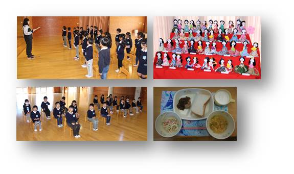 今日から3月です。明後日はひな祭りが予定されています。子どもたちの手作りのおひな様の用意もできました。3月3日が楽しみです。また、年長児は修了証書授与式に向けて練習が始まりました。ちょっぴり緊張しているようです。