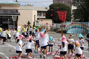 運動会まであと2週間、練習にも熱が入ってきました。園児の数が減ったために種目の内容を一部変更して実施するため、初めての内容の練習になり、園児も先生たちは少し苦戦していますが、運動会には最高の演技を見せたいと頑張っています。また、今朝は保護者の方が道の落ち葉はきを手伝ってくれました。ありがとうございます。