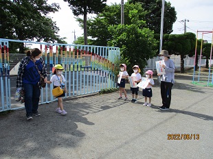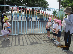 「まん延防止等重点措置」の延長を受け、例年実施しております保育参観の持ち方の変更にご理解いただき感謝いたします。22日に分散型保育参観の計画表を配布しました。第一希望を優先に計画表を作成しましたが、思い通りにならなかった保護者の皆様のご理解に感謝いたします。参加人数を踏まえ三密を考え計画表を作成したことにご理解下さい。参加に際しましては、配布しました健康確認票の提出をお願いいたします。