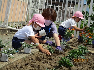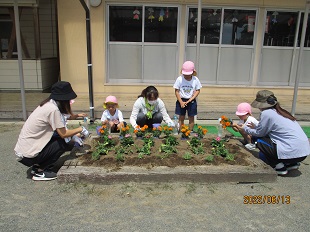 水やりを忘れずにして、花いっぱいの幼稚園にしましょうね。