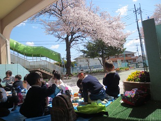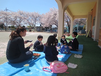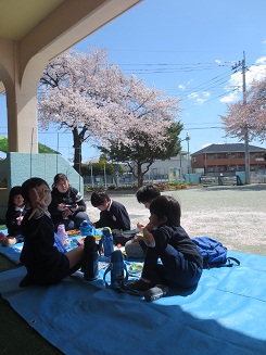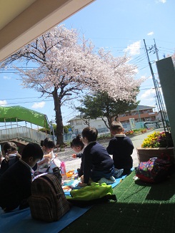桜を見ながらのみんなでわいわいのお弁当もいいものだよ。