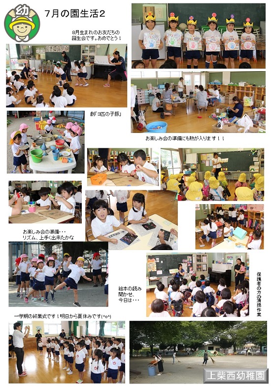 夏休みも残りが少なくなってきました。でも、まだまだ休みは続きますので、それぞれ楽しい夏休みを過ごしています。園として、この夏休みを利用して、一学期の活動を写真にまとめま紹介しています。今日はその14回目です。(誕生会・お楽しみ会の準備等)