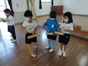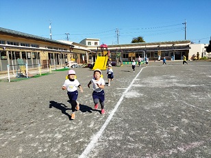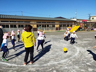 体操マラソンや中あて、縄跳びなどでたくさん体を動かして遊びました。