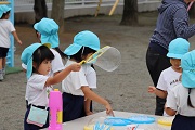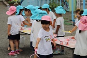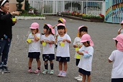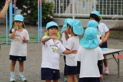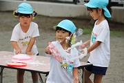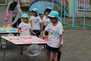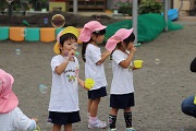 はっきりしない天気が続いています。園児たちが楽しみしているプールでの水遊びができません。昨日予定していた小学校の6年生との交流水遊びが延期になり、明日実施する予定ですが、どうなりますかね。今日は、水遊びができないので、みんなでシャボン玉遊びをしました。最初は、なかなかうまくシャボン玉になりませんでしたが、少しずつうまく、大きなシャボン玉ができるようになり、みんな大はしゃぎでした。経験することで少しずつ知恵をつけていきます。