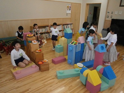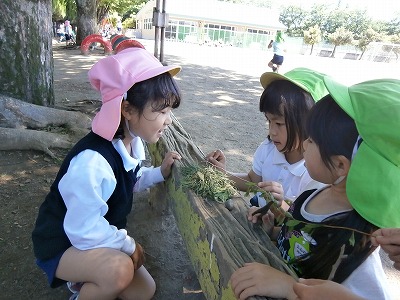 子供たちは、外遊びの時に、上手に木陰を利用して遊んでいましたよ。自分のやりたい遊びを見つけ、取り組む意欲が、少しずつ出てきています。