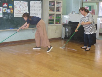 だから、やめられない。大切な心が育つ園児たちは今日も楽しいように進めていました。最後に保護者の方々がワックスを掛けてくださいました。大変綺麗になりました。