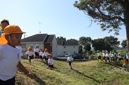 10月18日(水)は、久々の晴天です。ずうっと雨が降り続け、部屋から園庭を眺める日々でした。4・5歳児は親子遠足で行った動物園の思い出を製作しています。今日は、朝から青空が顔を出し、保育園と幼稚園いっしょに外で元気よく体操マラソンを行うことができました。大好きな芝山も雨に洗われて生き生きと見えます。