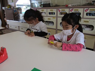 「まん延防止等重点措置」の延長を受け、例年実施しております保育参観の持ち方の変更にご理解いただき感謝いたします。22日に分散型保育参観の計画表を配布しました。第一希望を優先に計画表を作成しましたが、思い通りにならなかった保護者の皆様のご理解に感謝いたします。参加人数を踏まえ三密を考え計画表を作成したことにご理解下さい。参加に際しましては、配布しました健康確認票の提出をお願いいたします。