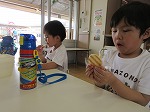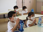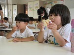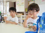 みんな約束を守って美味しそうに「おせんべい」を食べました