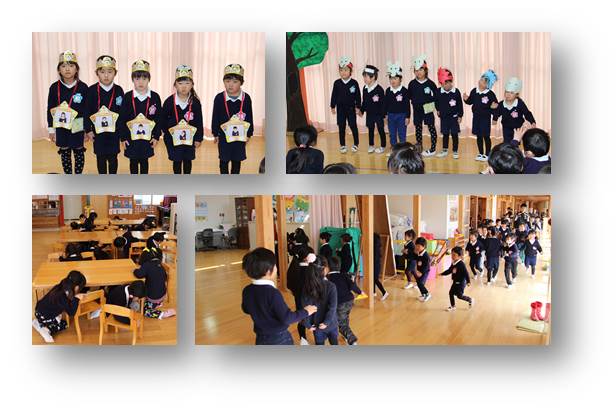 また、今日は3月生まれのお友だちのお誕生会を行いました。3月生まれのお友だちは、年長児2人・年中児3人の5人です。これで年長児はみんな6歳に、年中児はみんな5歳になりました。おめでとうございます。
