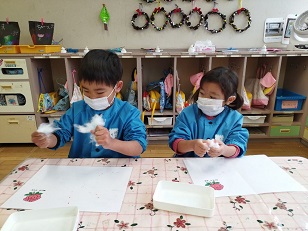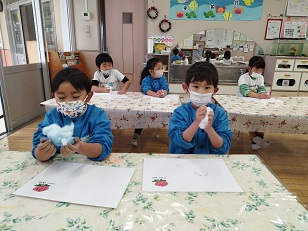 白い綿に色を付けています。