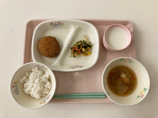 ソイ丼 かきたま汁 バリバリサラダ 牛乳