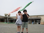園庭の鯉のぼりと友達になろうと遊びに来てくれました