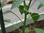 昨日みんなで植えたピーマンの苗が小さな実をつけています