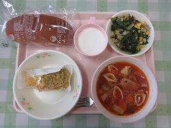 メンチカツサンド ゆでキャベツ 豆腐と野菜のコンソメスープ 牛乳